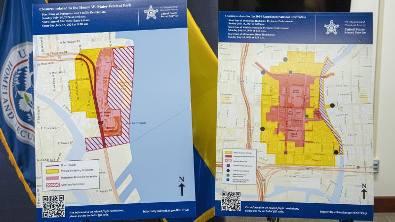 The Republican National Convention in Milwaukee next month will have strict security measures in place, as announced by the US Secret Service on Friday. A perimeter has been established to prevent protesters from gathering at Pere Marquette Park, which is near the venue. The park is now within the “hard” security perimeter, allowing only credentialed attendees and volunteers inside and prohibiting weapons, according to Audrey Gibson-Cicchino, US Secret Service RNC coordinator. The security plans also include designated areas for protest speeches on both sides of the hard perimeter, as outlined by Nick DeSiato, chief of staff at the Milwaukee mayor’s…
